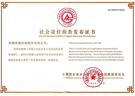 2018年7月26日上午,2018年安徽省企業(yè)社會責任報告發(fā)布會在省城合肥豐大國際大酒店舉行,安徽安簧機械股份有限公司黃樂明董事長受邀參加,本次發(fā)布會全省有101家優(yōu)秀企業(yè)參加了報告發(fā)布。這是安簧公司連續(xù)第四年發(fā)布社會責任報告,主動履行社會責任,踐行五大發(fā)展理念,接受社會監(jiān)督,讓企業(yè)運行更加綠色、健康、和諧,展現(xiàn)了安簧公司愿以更好的產品服務于更美好社會的意愿。
